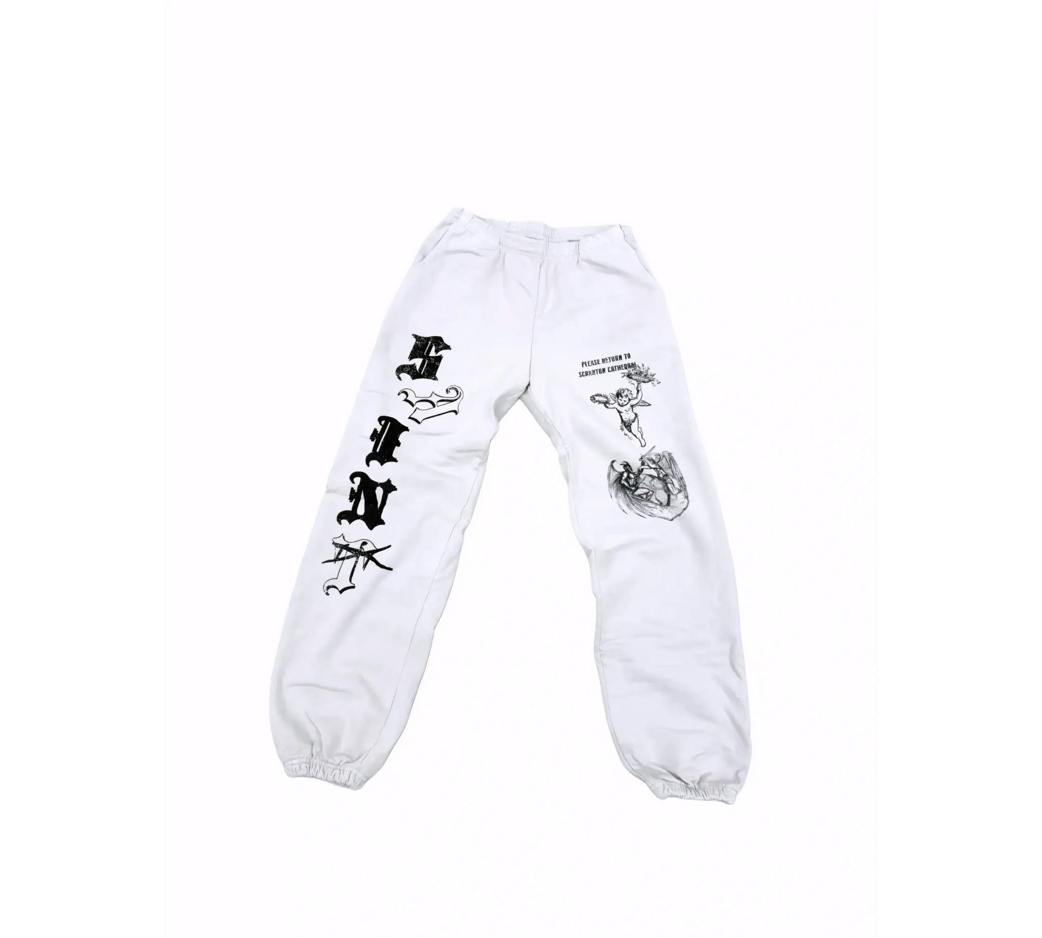 Elevate your fit with these Saint Joggers—a bold statement piece featuring striking cross and skull graphics with fiery accents. Crafted for those who refuse to blend in, these joggers combine edgy streetwear aesthetics with comfortable everyday wear. The intricate black design work delivers serious visual impact while the relaxed silhouette keeps you moving freely. Perfect for anyone looking to channel dark, rebellious energy without sacrificing style or comfort.