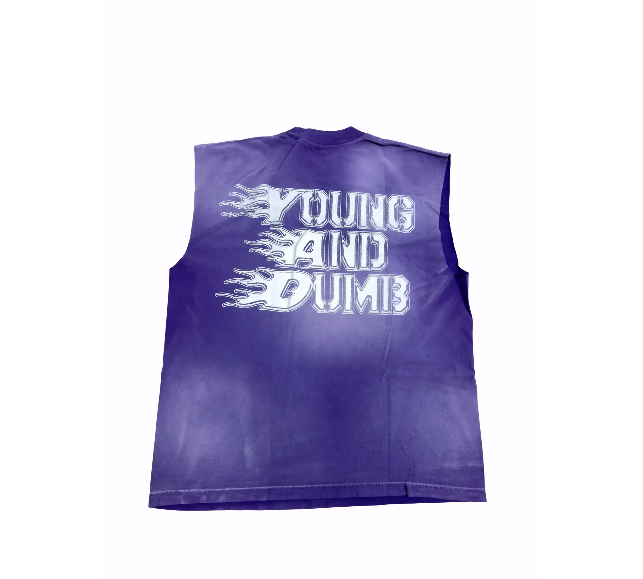 Young & Dumb Cut Off Raw energy meets effortless style with this bold cut-off tee. Designed for those who refuse to play it safe, this piece strips away the ordinary with its edgy silhouette and unapologetic attitude. Perfect for making a statement without saying a word. Throw it on with your favorite fit and own the room. This is streetwear that doesn't apologize.